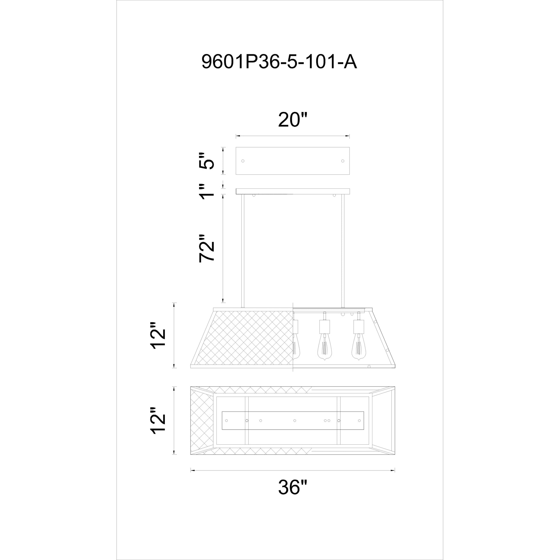 The Alyson 5 Light Chandelier clearly exudes that rustic warmth and industrial simplicity. This down chandelier has a 36 inch long glass and metal shade holding five exposed bulbs. This oversized light fixture can certainly cozy up a cottage-style kitchen or a rustic industrial dining room.