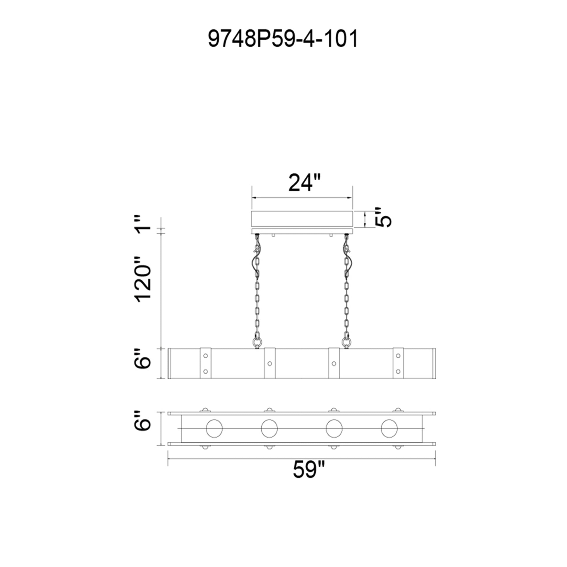 The Pago 4 Light Chandelier offers a stylish and practical alternative to an exposed wood beam ceiling. Featuring a 59-inch linear design with a wood and metal shade in black and wood grain brown, this fixture adds rustic-industrial charm to any space. Compatible with twist-and-lock LED GU10 bulbs (sold separately), its perfect for illuminating dining tables or kitchen islands. Elevate your decor with this chic, oversized lighting solution.
