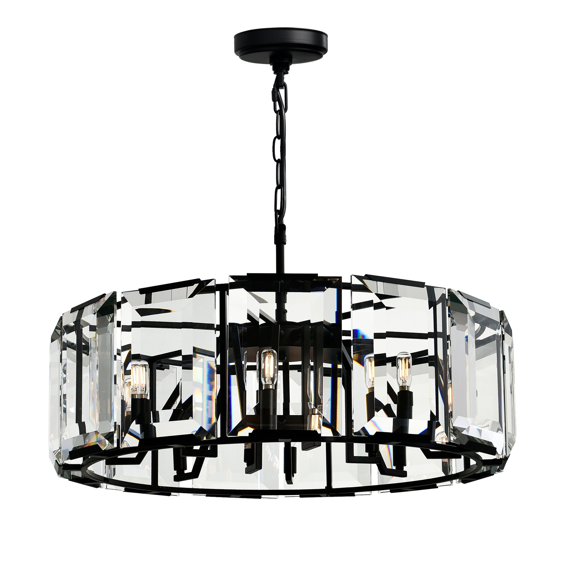 Want to bring a rustic element into your modern home? The Jacquet 12 Light Chandelier can do the trick. This 31 inch circular light source with a black metal frame covered with beveled glass panels allow you to subtly incorporate a bit of ruggedness into a refined space. Twelve candelabra-based bulbs give out a good amount of warm, welcoming light.