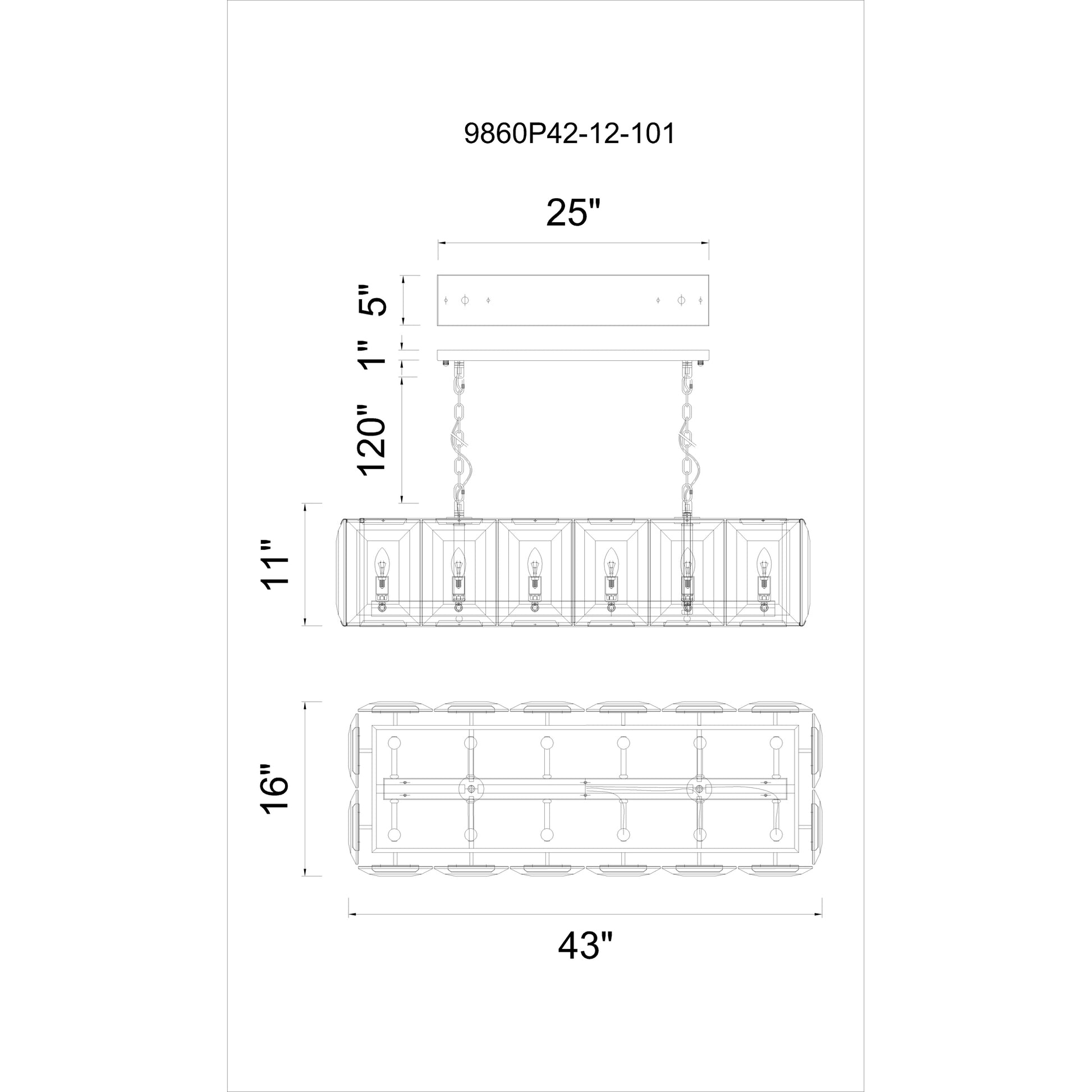 A little bit rugged and a little bit modern, the Jacquet 12 Light Chandelier displays an unpretentious charm that will can make any room look and feel real, inviting, and grounded. This 42 inch oversized chandelier is designed with a rectangular shade fashioned with a metal frame in black and clear crystal glass panes. Twelve candelabra-based bulbs provide illumination that's beautifully diffused by the beveled glass.